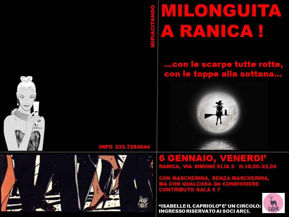 Non tutti sanno che la Befana balli il tango, con le calze a rete, ma le scarpe rotte. Nella bella sala dell’ex biblioteca di Ranica.