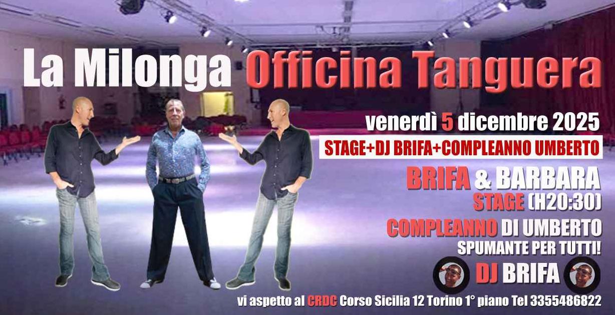 Milonga Officina Tanguera! Compleanno Umberto! Dj Brifa! Stage Brifa & Barbara! Spumante per tutti