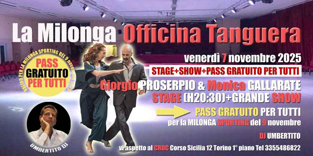 Milonga Officina Tanguera Stage+show Giorgio /monica Ingresso Gratis X Tutti a Milonga Sporting 9/11