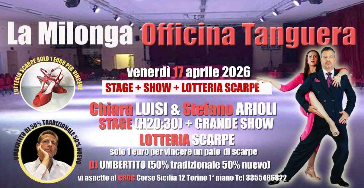 Milonga Officina Tanguera! Stage+show dei Maestri Chiara Luisi & Stefano Arioli+lotteria scarpe