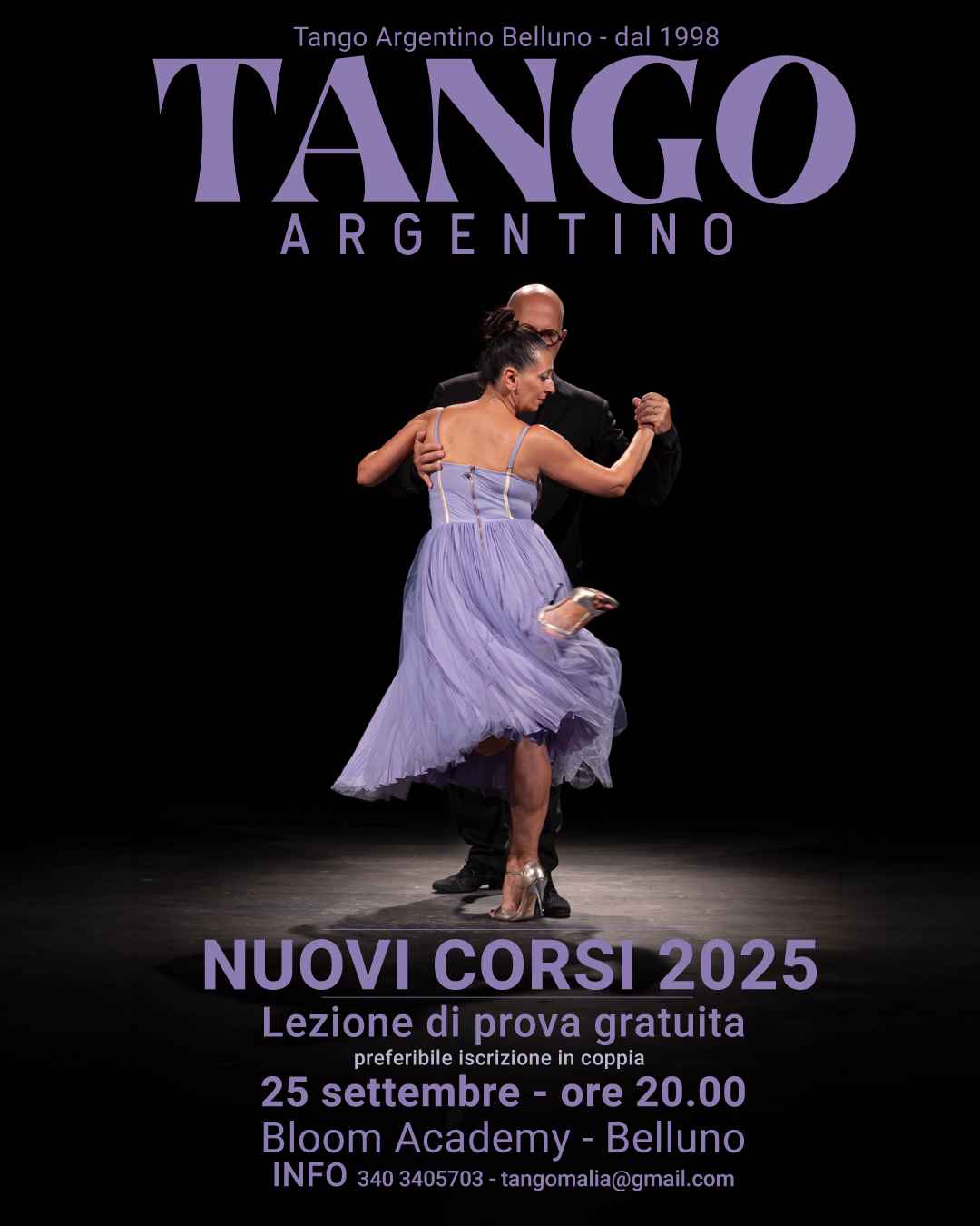 Il 25 settembre ci sarà la lezione di prova per i nuovi corsi della scuola di Tango Argentino Belluno. Siano nati nel 1998 e da allora continuiamo a ballare il tango argentino e divulgare la sua cultura.