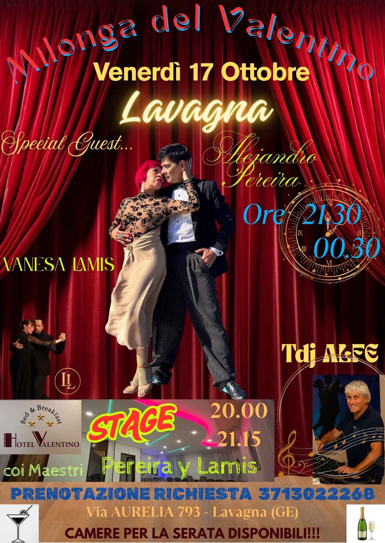 VENERDI' 17 Ottobre dalle ore 21.30 alle 00.30 serata di Milonga presso l'hotel Valentino di LAVAGNA!!!