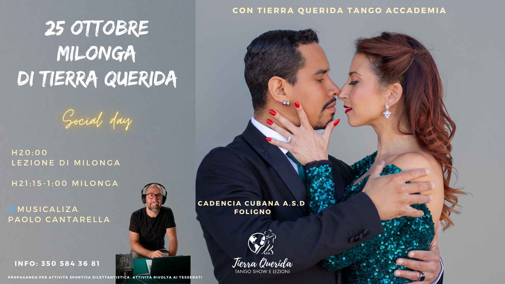 Ti aspettiamo Sabato 25 Ottobre a Foligno per la Milonga di Tierra Querida Tango con i Campioni Italiani 2025 in carica per vivere una serata piena di tango.