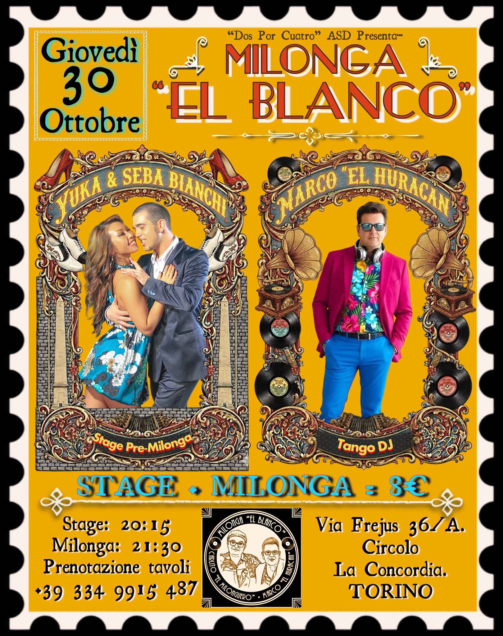 🪩milonga El Blanco 🗓️giovedi 30 Di Ottobre ⚜️stage Pre~milonga con 💃yuka & Seba🕺 🕣20:15~21:15 stage!! dopo fino all’una Milonga con 🎶tdj Marco "el Huracan!!💰 Stage + Milonga= 8 € 📍 Circolo “la Concordia” Via Frejus 36 Torino.🅿️parcheggio interno disponibile solo lato ingresso milonga.🍹 Disponibile il servizio bar interno alla sala.🚸info Stage Y&s +39 327 85 60 253🪑 Prenotazione tavoli al Numero +39 334 99 15 487 è consigliata!👉link Evento: y&s👨💻website: https://nuestrotangodance.wixsite.com/yuka-seba/it🤗Il Giovedì è meglio con voi!! Ci vediamo!!