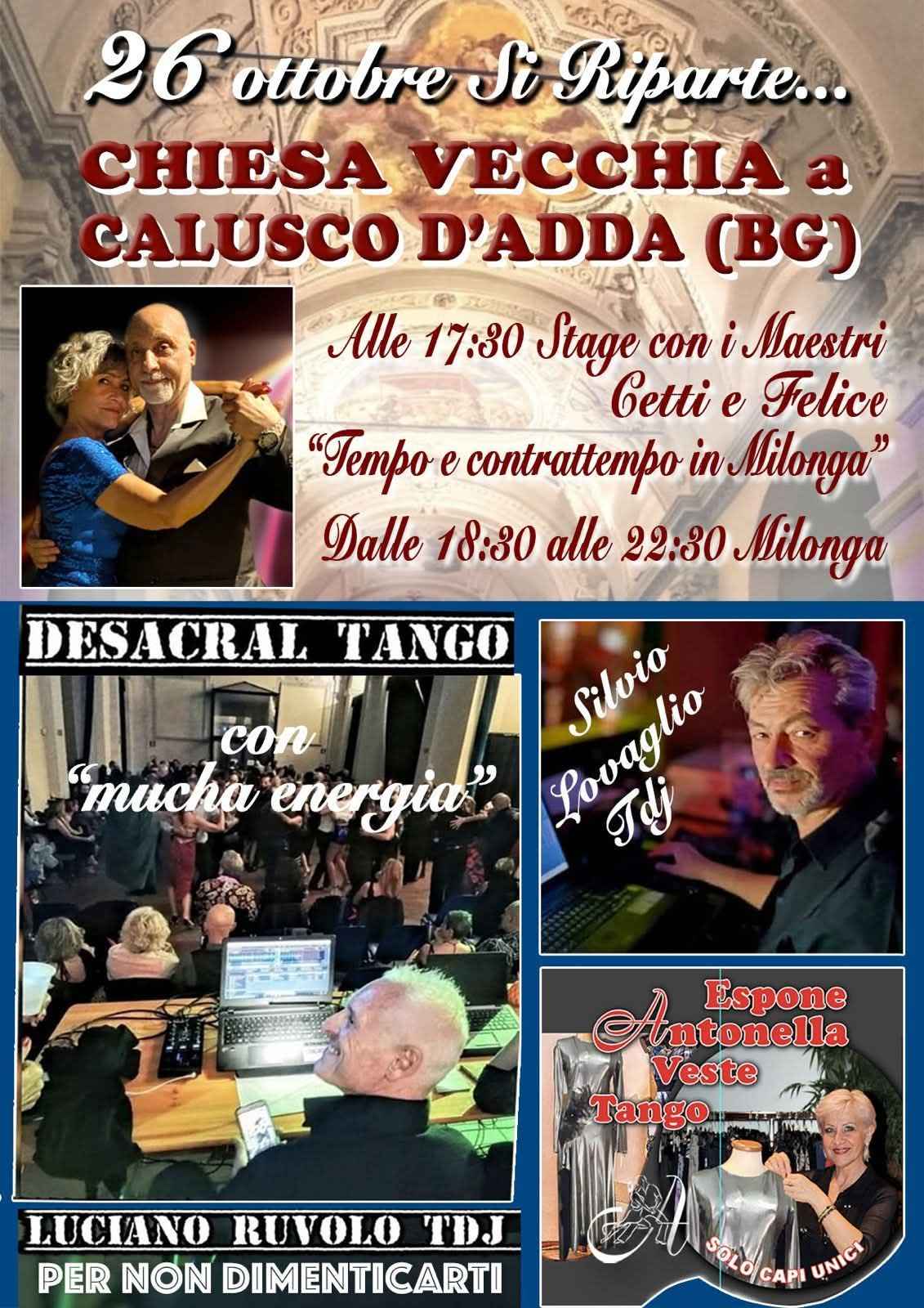 Dalle 17,30 alle 18,30stage con i maestri Cetti Aliquo e Felice Primo Tema Tempo e contrattempo In milonga €5