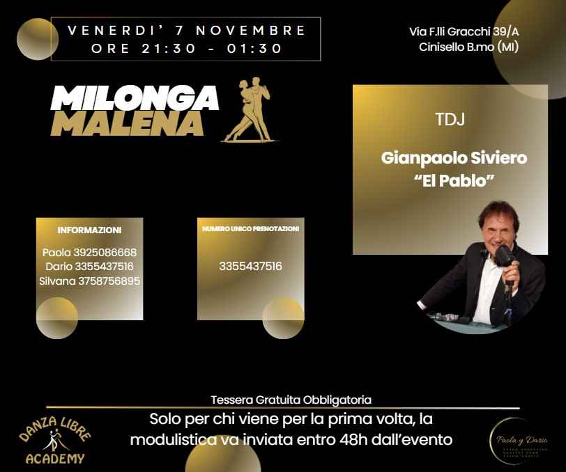 Il Venerdì è Milonga Malena, la milonga fatta da ballerini, per i ballerini!