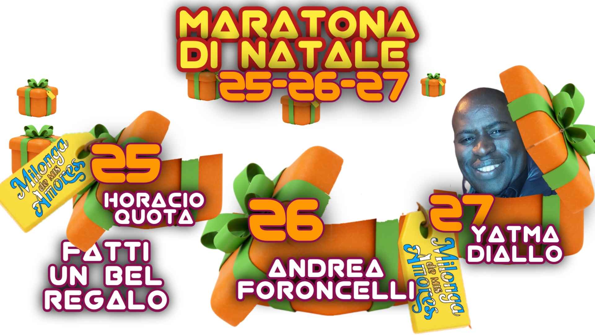 Giovedì 25 dicembre con Horacio Quota, venerdì 26 con Andrea Foroncelli e sabato 27 con Yatma Diallo !!!