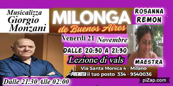 contributo Serata di ► Milonga= 12,00€subito dopo ►dalle 21:30 fino al ultima ,Tanda