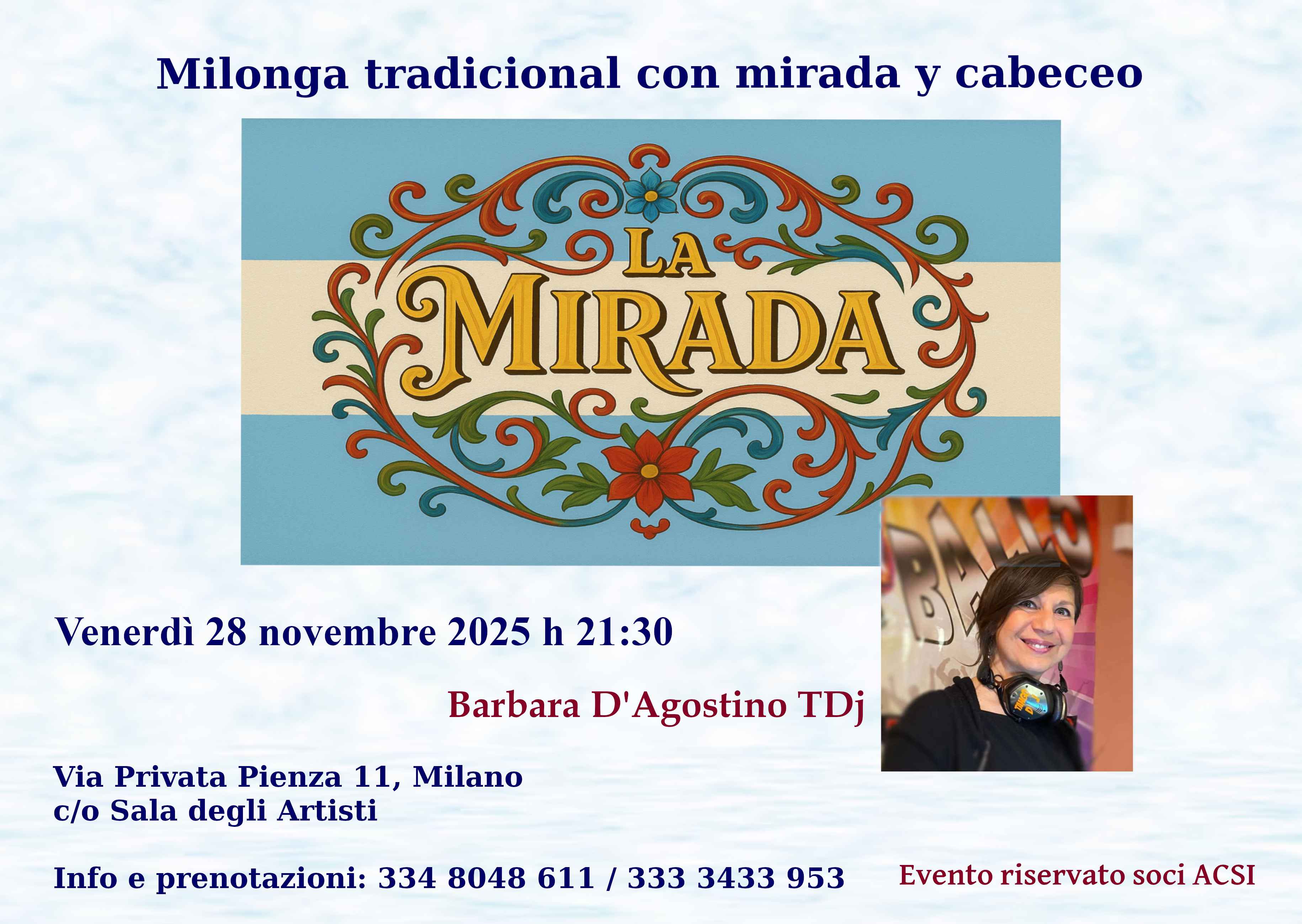 La Mirada: Milonga Tradicional c/o Sala degli Artisti - Musicaliza: Barbara D'agostino Tdj