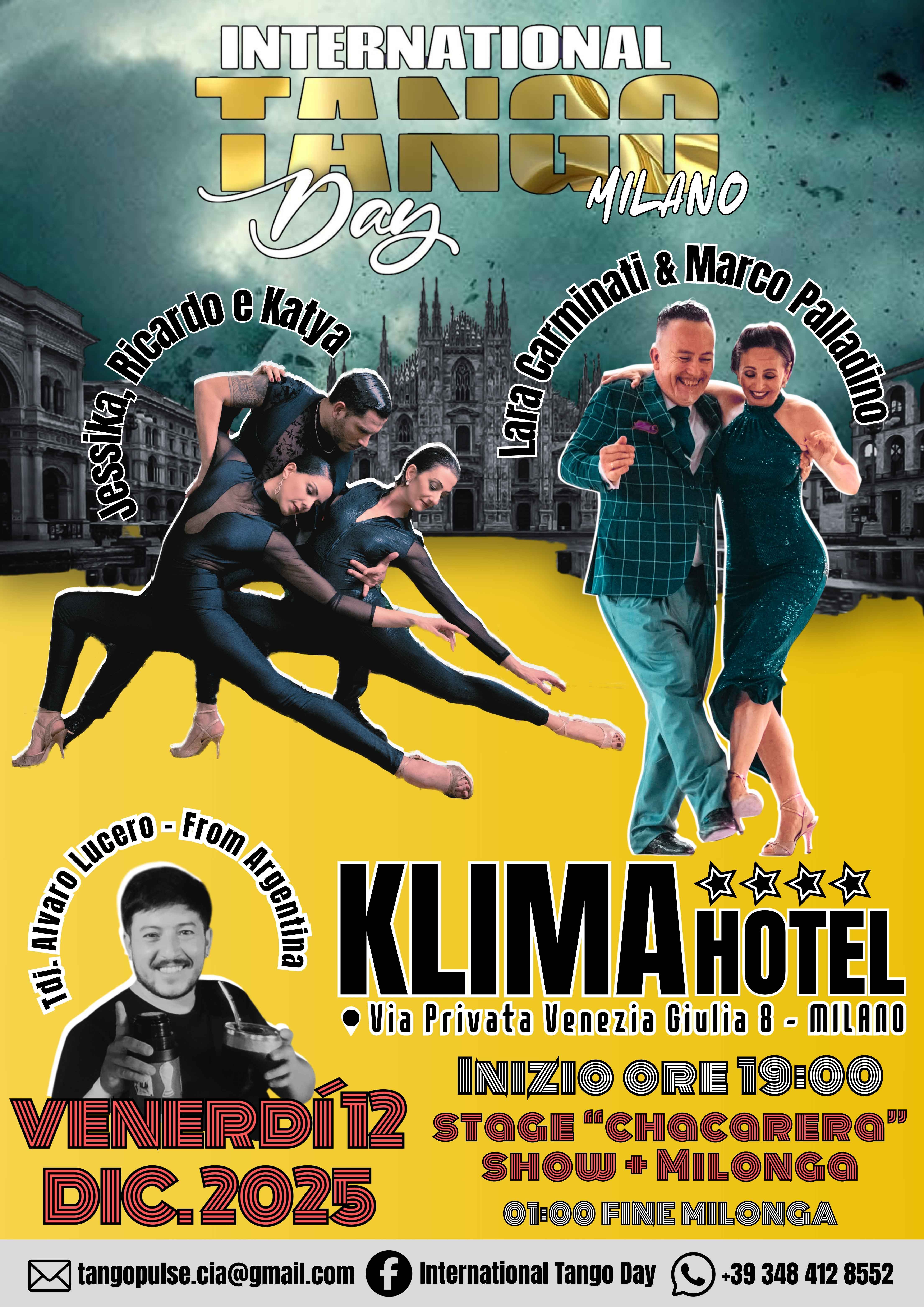 Inauguriamo il festival con una Milonga di Apertura in una location elegante e accogliente, il Klima Hotel Milano Fiere, dove musica, energia e atmosfera si uniscono per dare inizio a un week end indimenticabile dedicato al tango.