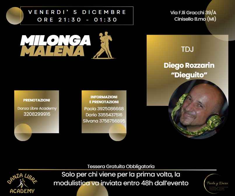 Il Venerdì è Milonga Malena, la milonga fatta da ballerini, per i ballerini!