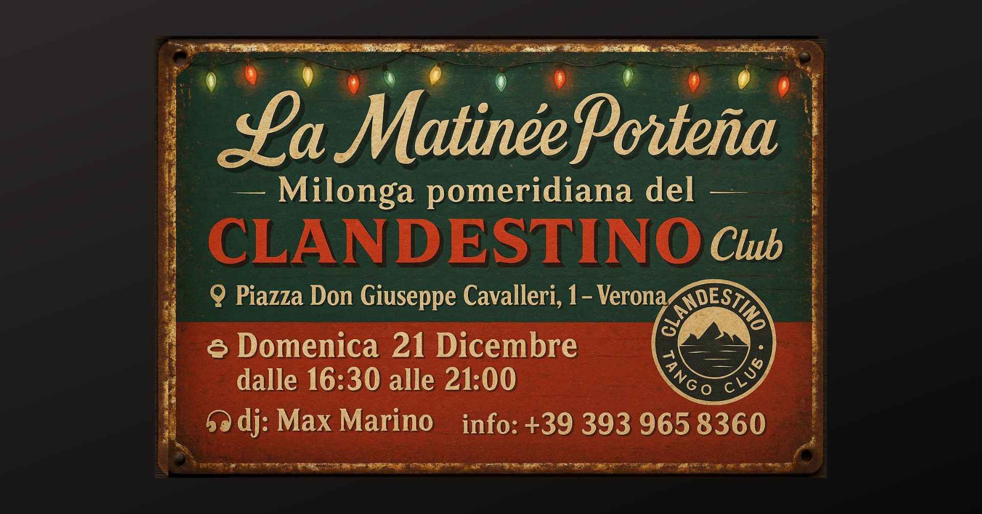 Ti aspettiamo alla Matinée Porteña del Clandestino Tango Club.