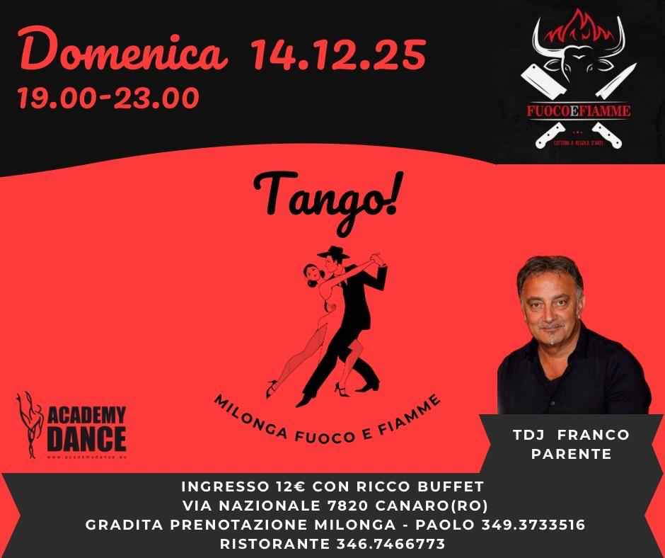 Appuntamento con il Tango Domenica 14 Dicembre con inizio ore 19 Dj Franco Parente, ampio buffet verso le ore 20. Ingresso 12 euro