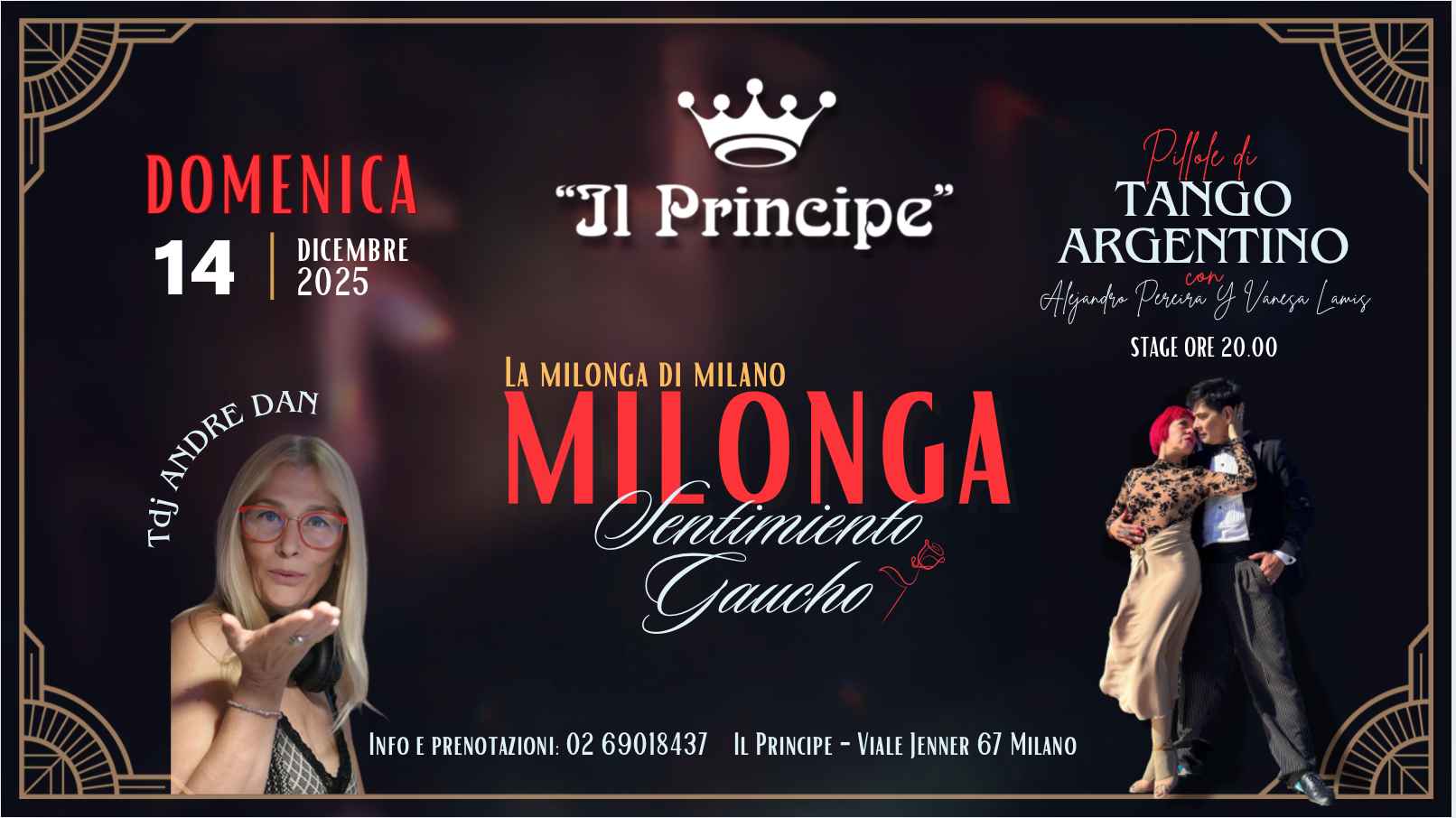 Amici del Principe, vi aspettiamo per tornare a ballare insieme nella nostra Milonga "sentimiento Gaucho".apertura porte: Ore 21.00
