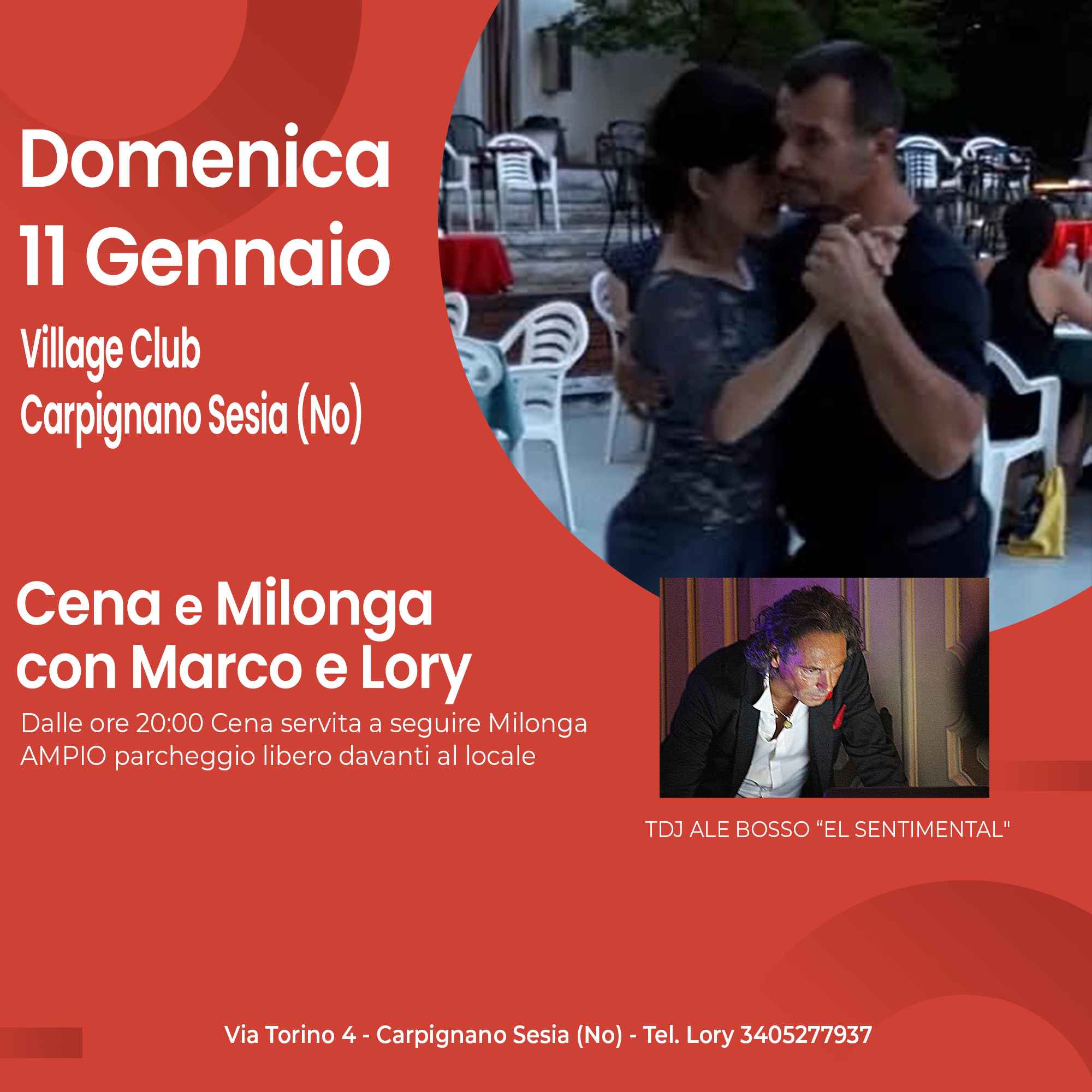 Cena + Milonga al Village di Carpignano Sesia (No) con Marco e Lory Tango Argentino
