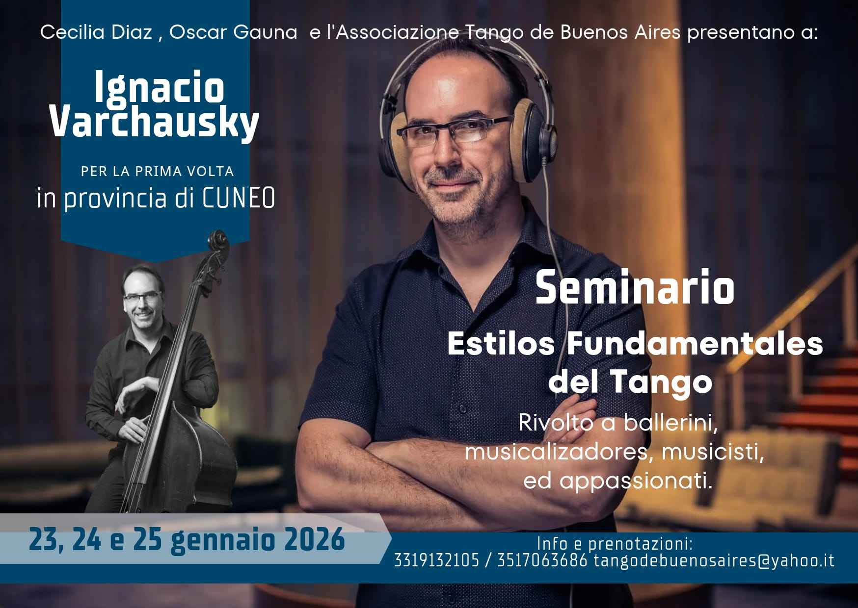 IGNACIO Varchausky è uno dei più grandi esperti al mondo della musica del Tango. La sua struttura pedagogica è caratterizzata dalla chiarezza e dalla ricchezza e dei contenuti. Quella che proponiamo è un’occasione imperdibile per scoprire e approfondire il Tango attraverso lo studio degli elementi e delle logiche che attraversano il linguaggio orchestrale .elementi condivisi ed elementi esclusivi definiscono il discorso stilistico di ogni orchestra, riconoscerli e comprenderli è il primo passo per poterli interpretare e sviluppare la propria espressività stilistica.