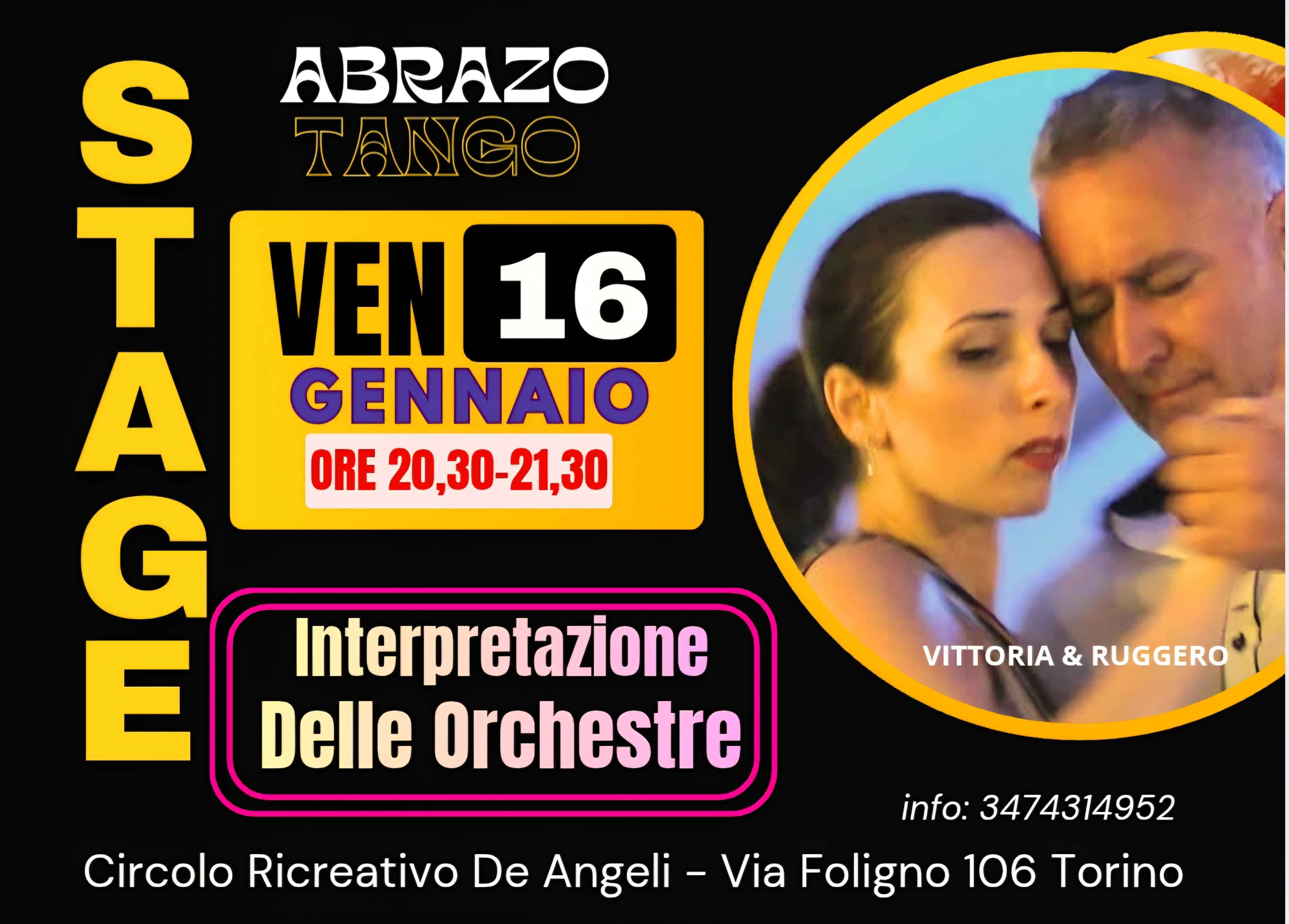 tornano i venerdì alla milonga Abrazo Venerdì 16 gennaio. Dove si balla, si chiacchera, e si sta insieme in allegria! Stage Dalle 20,30 alle 21,30 con Vittoria E Ruggero argomento della serata, riconoscere le Orchestre nel Tango, ci sarà buffet e spumante per tutti, dalle 21,30 appuntamento settimanale con Milonga dal Tradizionale al Contemporaneo la selezione musicale sarà a cura del Tdj Giovanni Lauto, sarà l'occasione per ritrovarsi nella nuova sala da ballo di 200 metri con pavimento perfetto e climatizzato, acqua free e si balla fino alle 0,30. Contributo Stage piu milonga 12€solo milonga 10€, comodo il parcheggio nelle vicinanze.