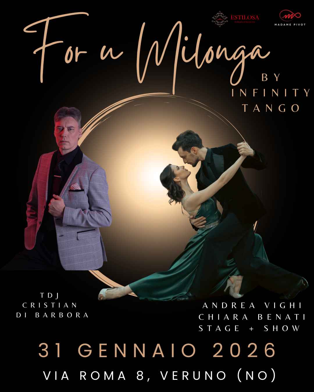 😃Sarà una serata straordinaria con l’atmosfera unica che solo Forumilonga sa dare. 🤩in questa magica serata avremo l’onore di avere con noi una coppia di enorme talento!!andrea Vighi & Chiara Benatiche ci delizieranno con uno stage e uno show di altissimo livello!!in consolle 🎧 un Tdj che ci farà letteralmente saltare in piedi dalla sedia tanda dopo tanda! Signore e Signori Mr. Cristian Di BARBORA!