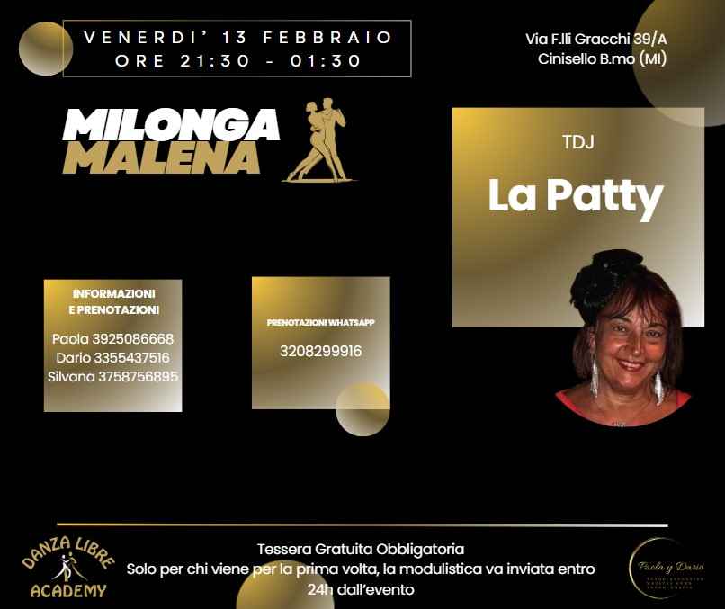 Il Venerdì è Milonga Malena, la milonga fatta da ballerini, per i ballerini!