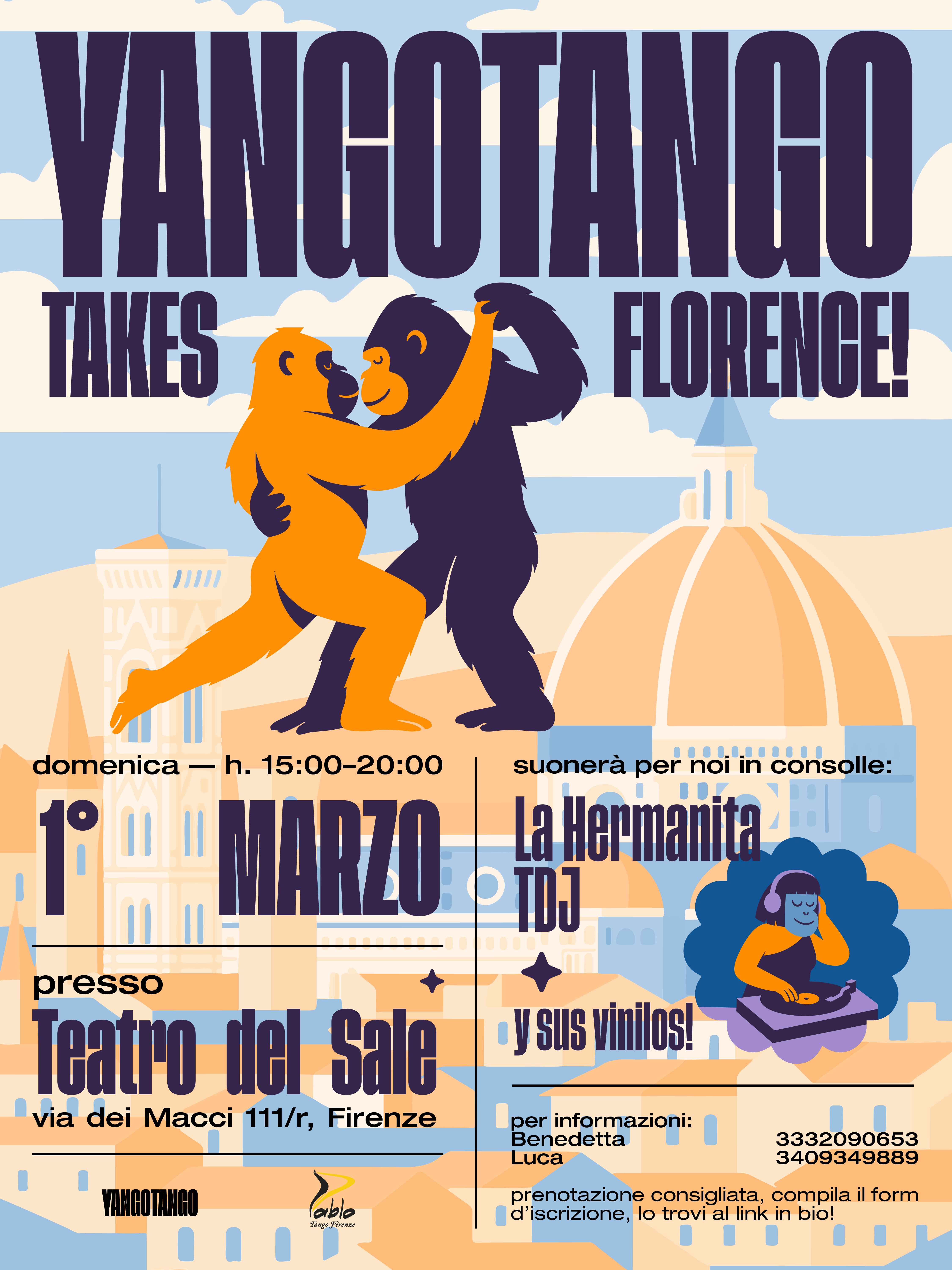 Milonga Yangotango 🐒 La Pomeridiana del Sale (Fi)yangotango sbarca a Firenze! Il terzo appuntamento della nostra milonga diventa itinerante.