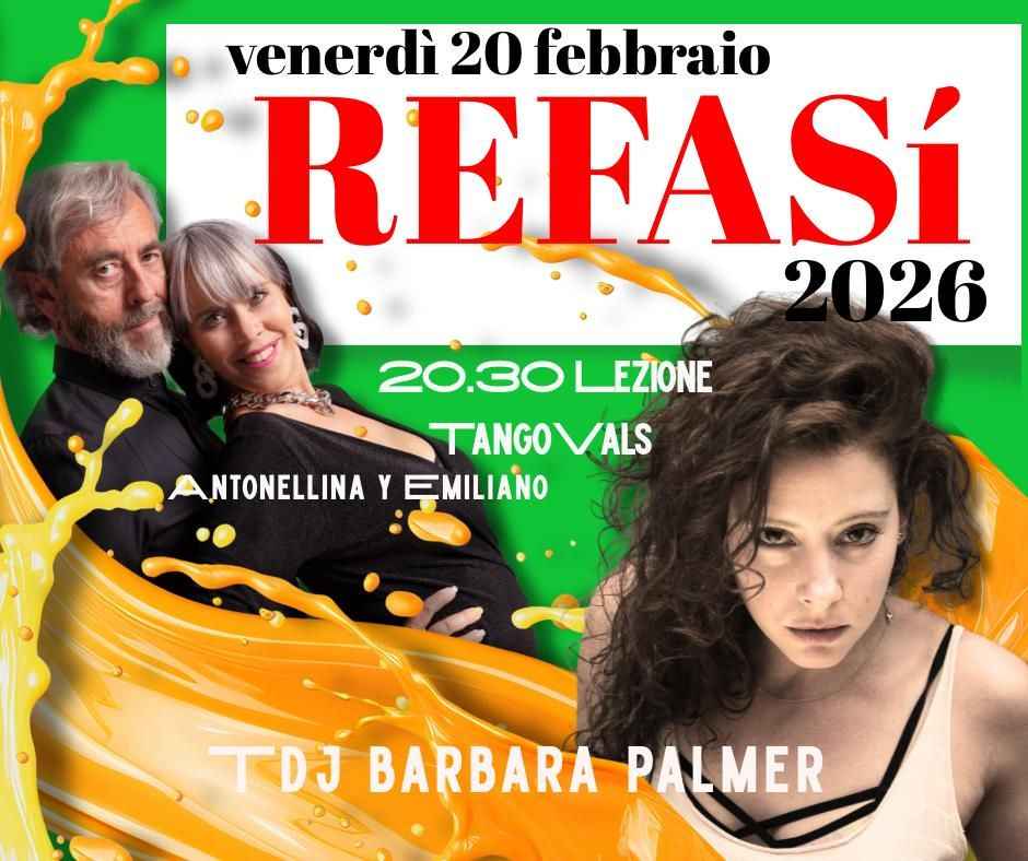 Refasi VenerdÌ 20 Febbraio.stage Di Vals in pre serata dalle 20,30 alle 21,40 con la straordinaria coppia Antonellina Miorelli E Emiliano Casalli, campioni internazionali di Vals nel 2021.milonga dalle ore 21,45 con la Tdj Barbara Palmer ( Valencia  ).prenotazioni al numero 3517015409 in via Sms/ Whatsapp, si ricorda che i posti verranno riservati fino alle ore 23 00.ingresso riservato ai soci Acsi/asi con la possibilità di fare la tessera in loco.durante la serata verranno effettuati foto/video per chi non lo desidera è pregato di farlo presente allo staff.contributo Stage €10,00contributo Milonga €10,00.comprensivo Di Bibite E Snacks. mostra meno