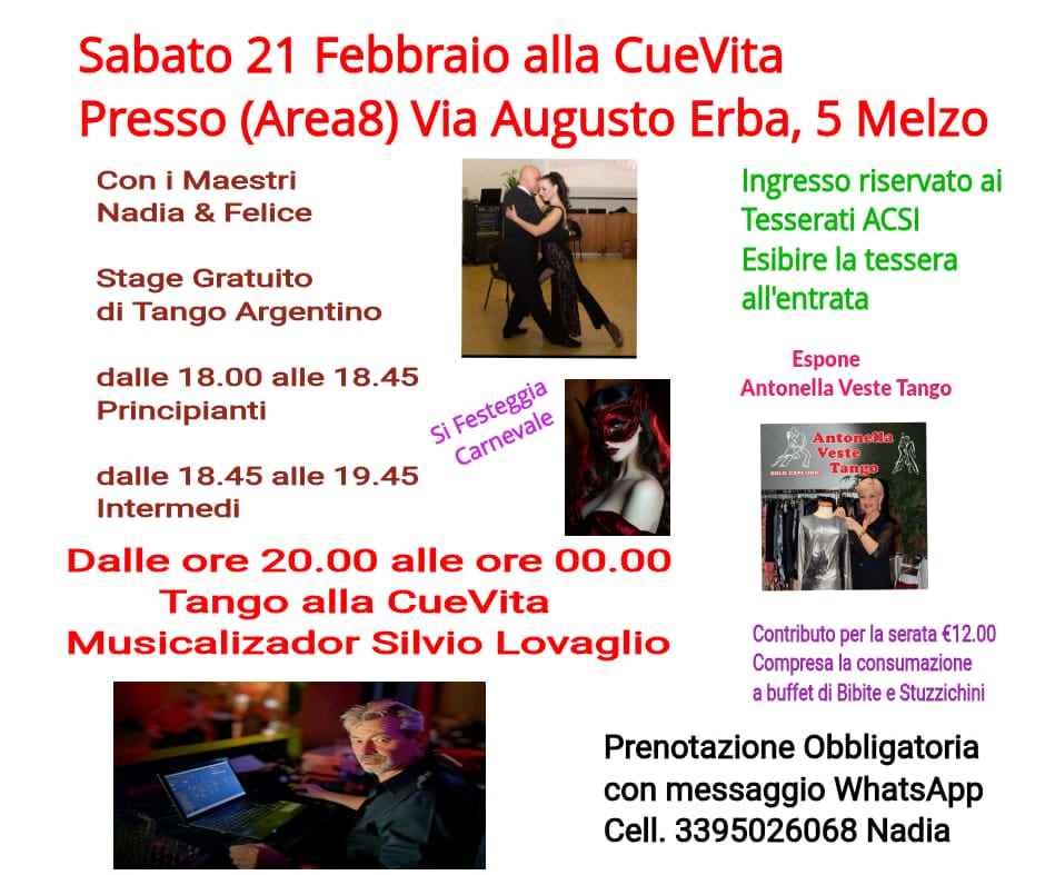 Sabato 21 Febbraio alla Cuevitapresso (Area 8)via Augusto Erba, 5 Melzo