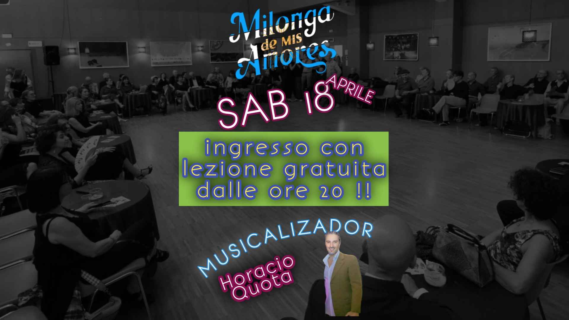 - Sabato 18 aprile - Serata di Tango -- inizia il ciclo di lezioni aperte a tutti i livelli-- dalle 20:00 lezione pre serata - compresa con l'ingresso!!! -- con Titti Vaccari e Horacio Quota fino alle ore 21:00 ---