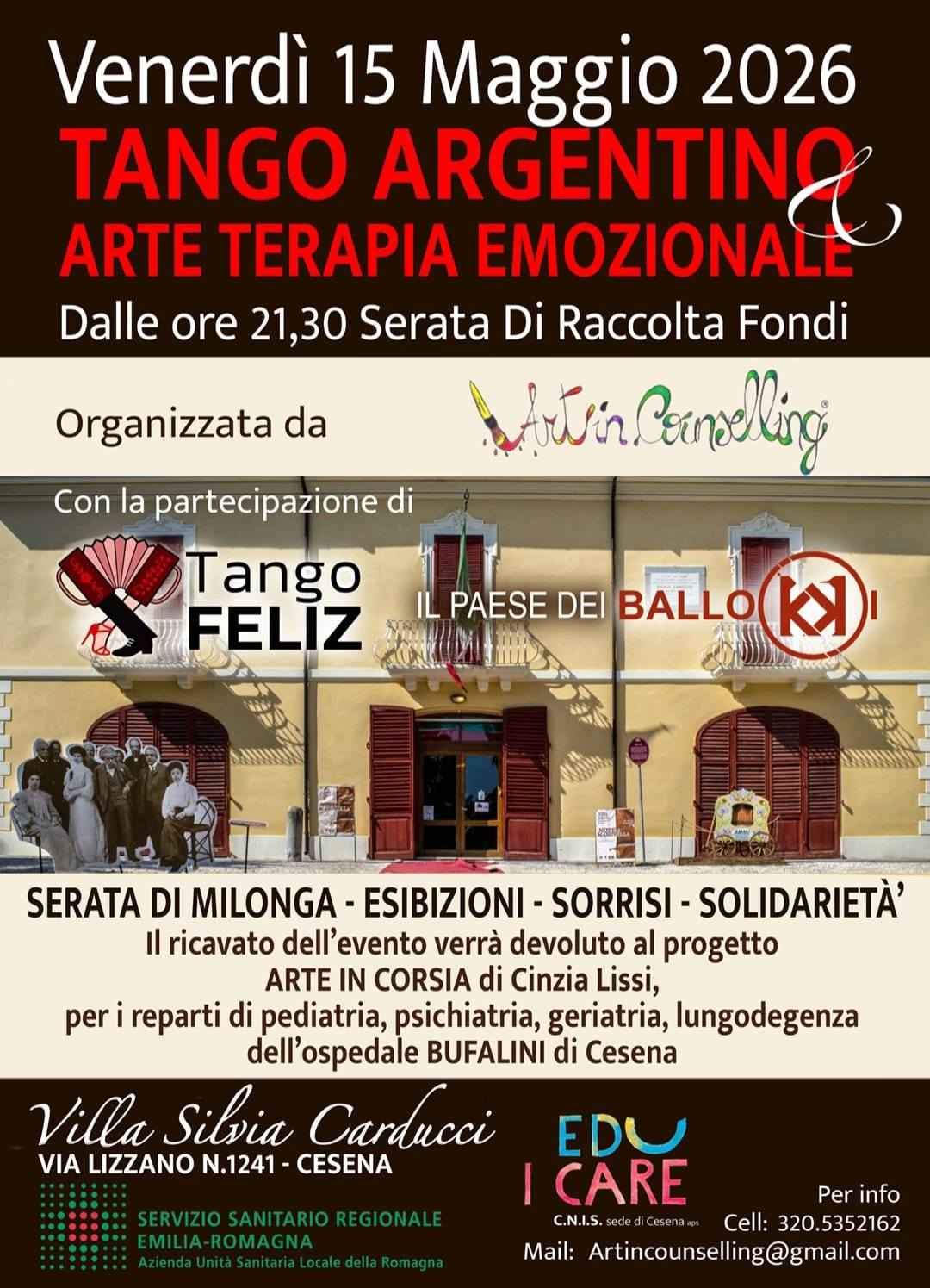 Villa Silvia Carducci – Cesena dj Andrea Vighiuna serata speciale all’insegna del Tango, dell’arte e della solidarietà evento di raccolta fondi