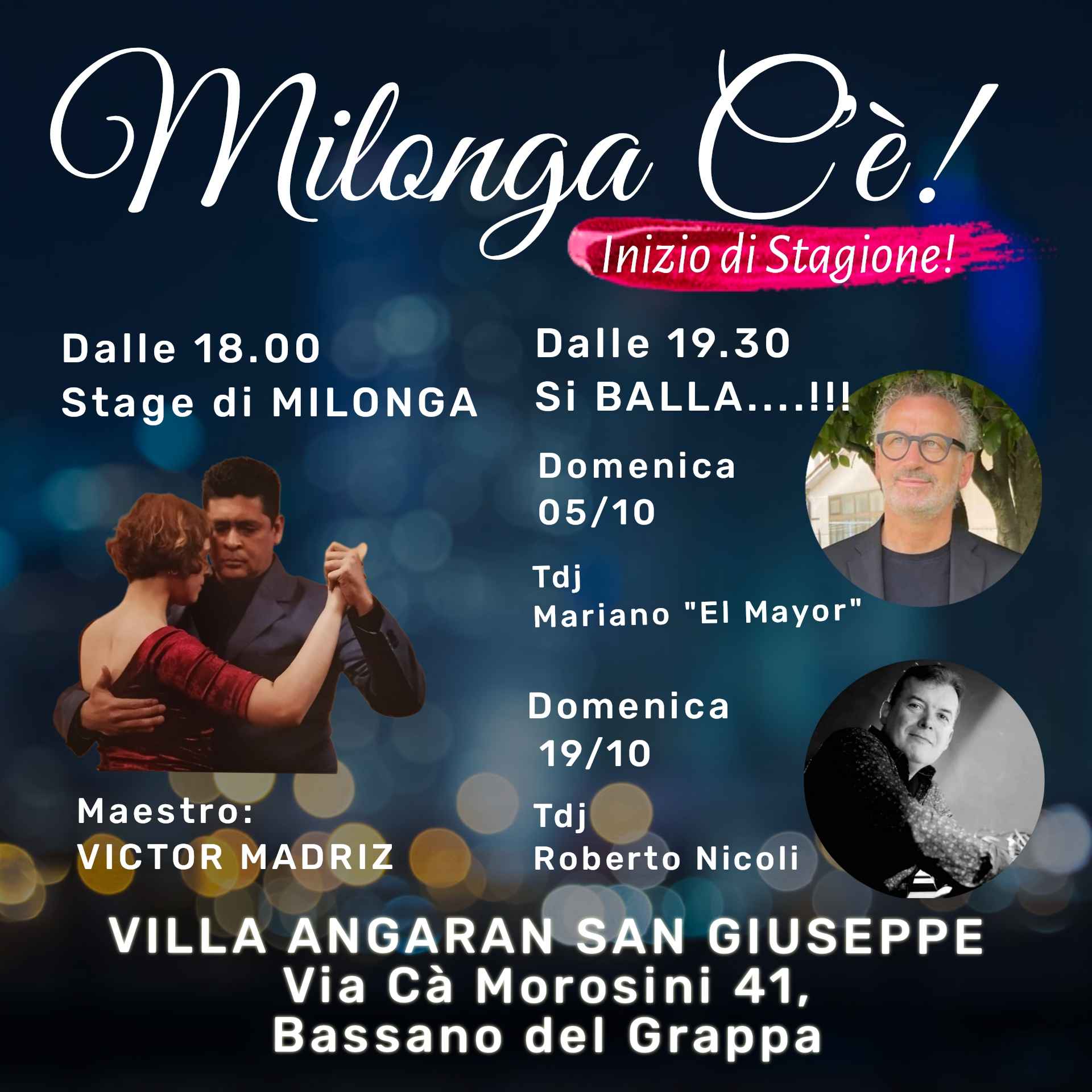 🫂milonga C'È!📍ci ritroviamo in una nuova stagione dalla domenica 05/10 nella bella Villa Angaran di Bassano del Grappa!(via Cà Morosini 41, Bassano del Grappa)🫂stage dii Milonga dalle 18.00 tema: Introduzione al traspie e Musicalità nella milonga con Victor Madriz