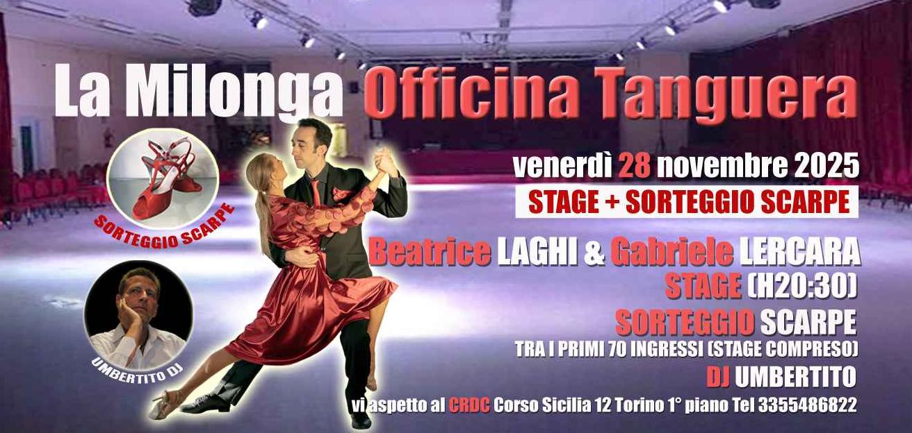 Milonga Officina Tanguera! Stage Beatrice Laghi & Gabriele Lercara, Sorteggio Scarpe Tango!