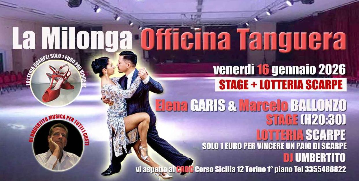 Milonga Officina Tanguera! Stage Elena Garis & Marcelo Ballonzo + Lotteria Scarpe!