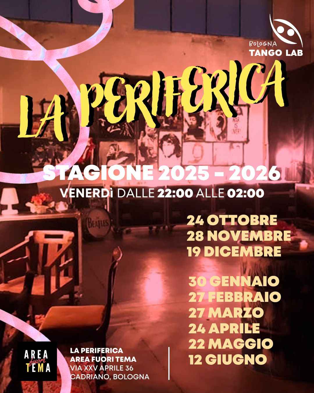 La Milonga si svolge presso Area Fuori Tema uno spazio alle porte di Bologna, insospettabile e accogliente frutto del recupero di un vecchio magazzino di strumenti musicali, ospiterà il nuovo appuntamento tanghero organizzato da Bologna Tangolab Asd in collaborazione con l'associazione area Fuori Tema Aps.