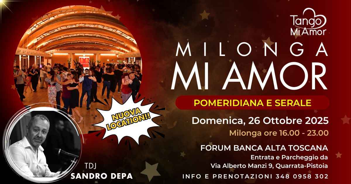 Apriamo le porte di una nuova splendida location per tutta l’edizione invernale, un luogo capace di regalarvi emozioni indimenticabili. Una pista da ballo fino a 900 mq vi permetterà di vivere appieno la magia del Tango, accompagnata da un’acustica impeccabile, da un parcheggio ampio, comodo e gratuito proprio accanto alla struttura. Ad accogliervi, come sempre, ci sarà il nostro staff, pronto a offrirvi calore, cura e tutti i comfort.vi aspettiamo al Forum Banca Alta Toscana, la vostra nuova casa del Tango, dove passione e bellezza si incontrano.