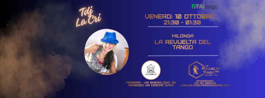 “la Revuelta del Tango” Milonga 𝐚 𝐅𝐞𝐫𝐫𝐚𝐫𝐚 “ Venerdì 10 Ottobre dalle 21.30 alle 01.30 𝐓𝐃𝐉 “la Cri” c/o Circolo “la Casona” Via Smeraldina 35 Ferrara Contributo serata € 10 -------------------------------