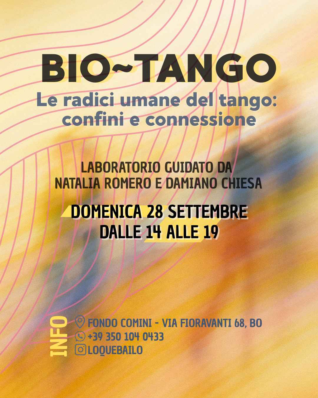 👉 Natalia Romero, insegnante e danzatrice nata a Buenos Aires, con una formazione in danza classica, contemporanea e tango. Da oltre dieci anni porta avanti un percorso di ricerca che unisce tecnica, improvvisazione e relazione, insegnando in scuole, festival e milonghe in Argentina e all’estero. Oggi vive e lavora a Bologna, dove propone il tango come linguaggio di connessione, creatività e consapevolezza corporea.