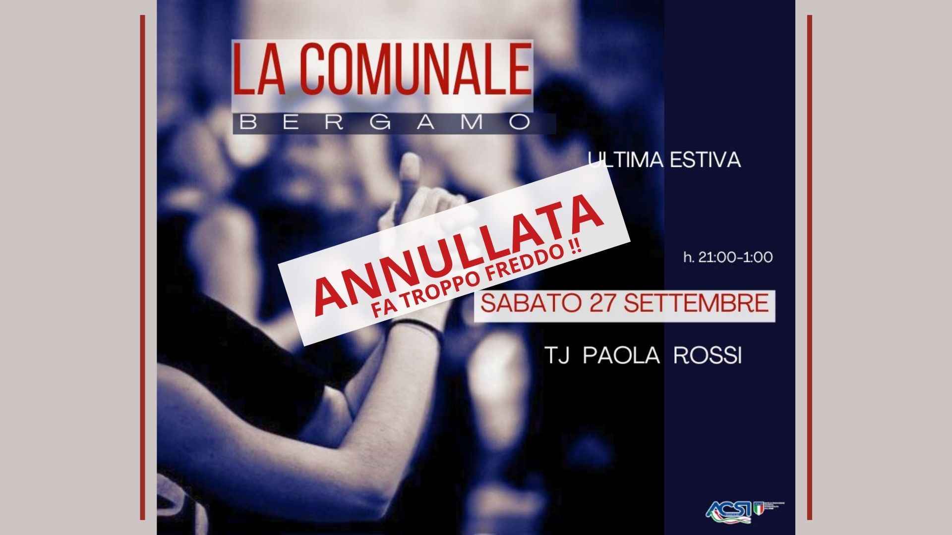 Spiacenti ma siamo costretti ad annullare la serata a causa della temperatura troppo bassa per ballare all'aperto !