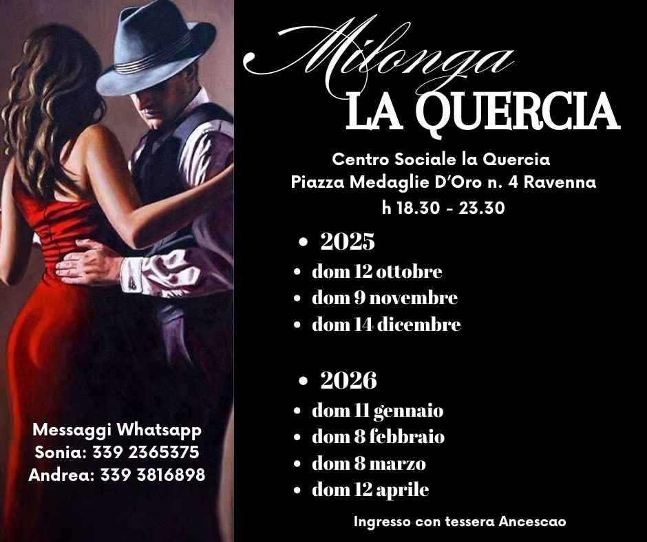 DOMENICA 9 Novembre, dalle ore 18,30 alle ore 23,30 con tandas y cortinas.