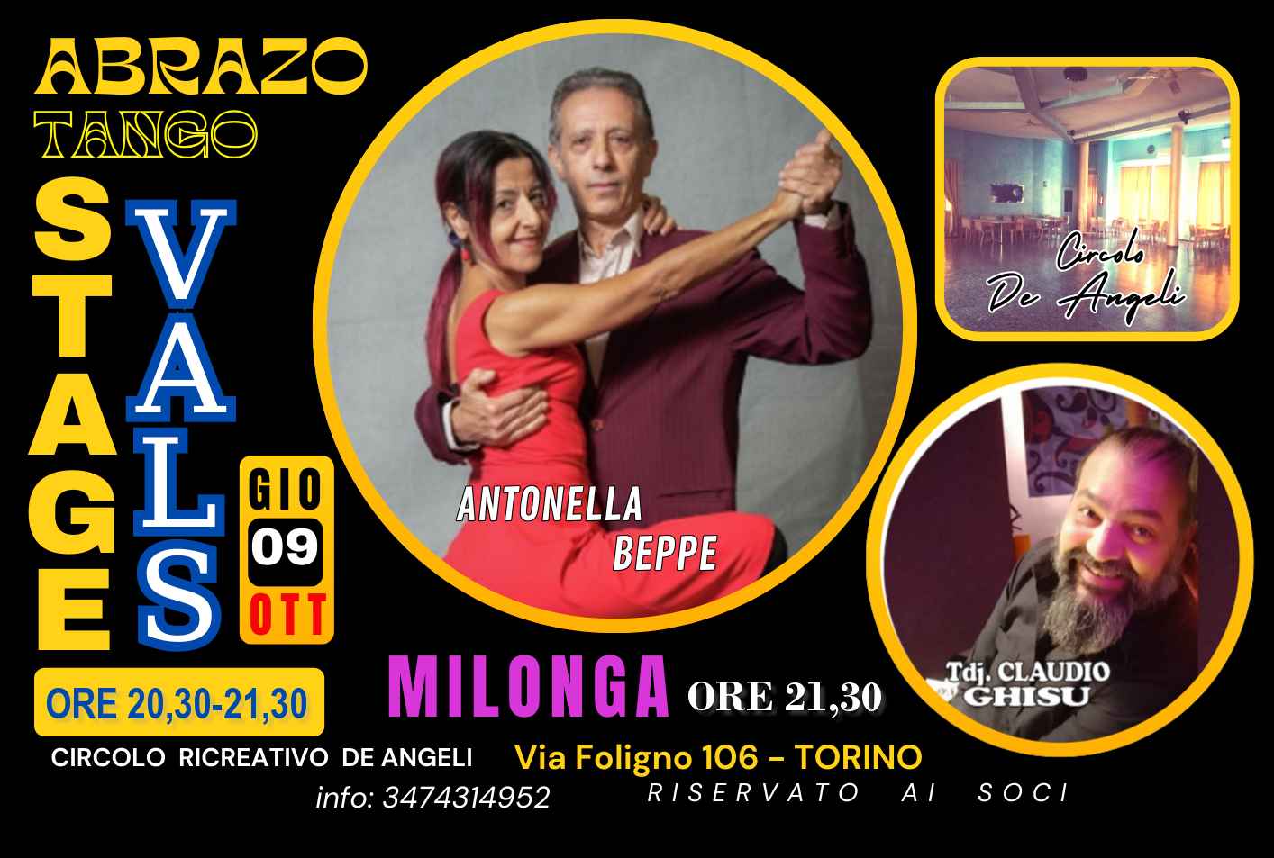 Giovedì 09 Ottobre dalle 20,30 alle 21,30 Stage in pre serata di Vals con Antonella e Beppe a seguire si balla al Circolo De Angeli fino a Mezzanotte .