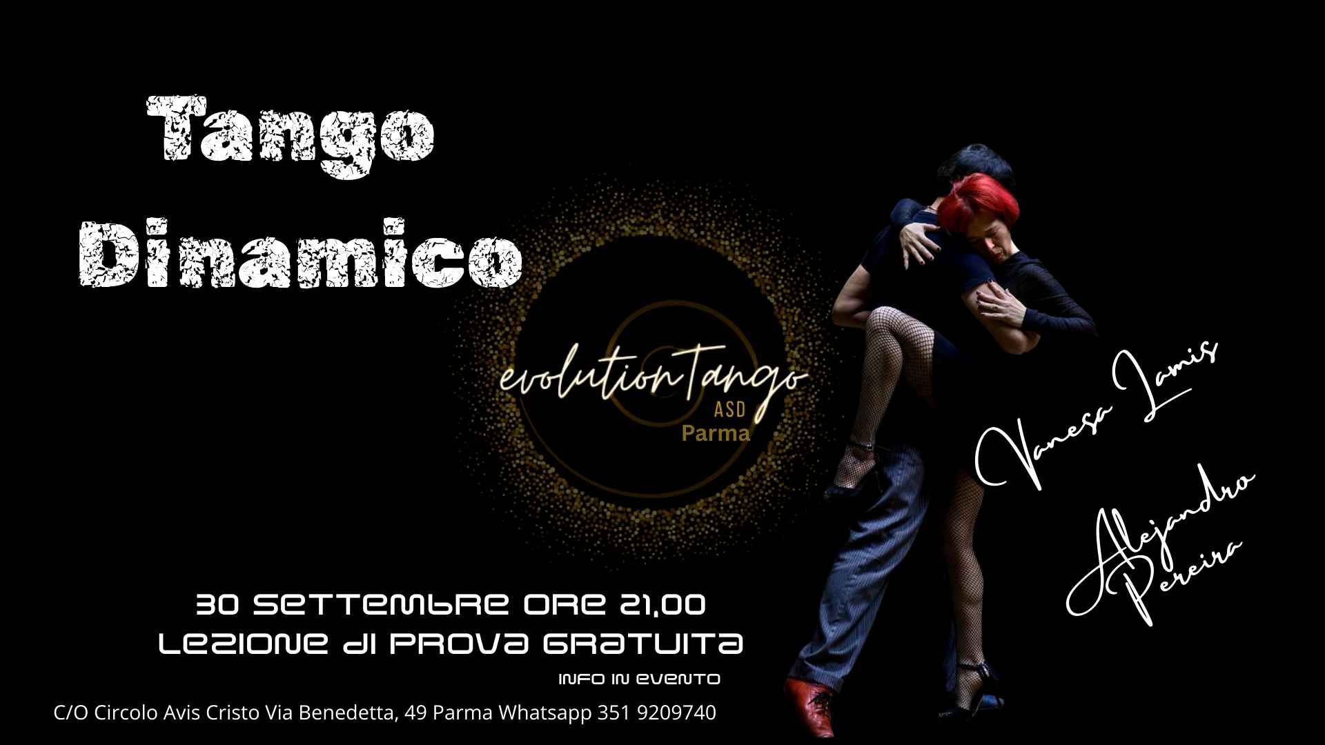 A Parma Vanesa e Alejandro Martedì 30 settembre, percorso di Tango dinamico alle ore 21,00 lezione prova gratuita e presentazione del corso.