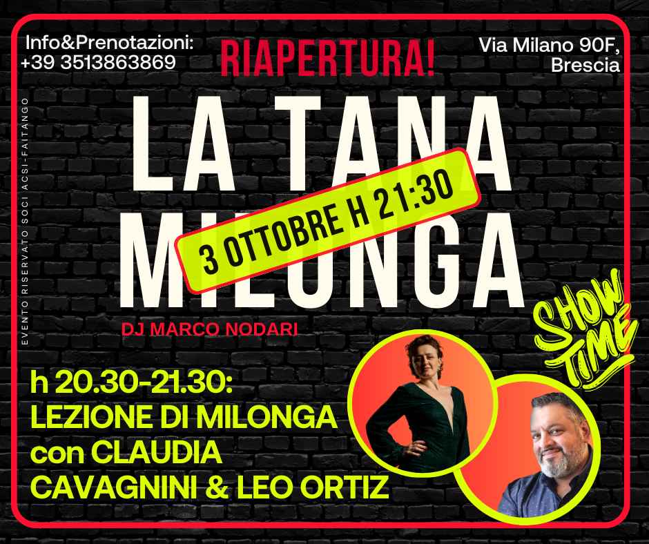 Attività riservata ai soci tesserati Acsi Tangoospite Speciale: Leo Ortizdalle 20.30 alle 21.30 seminario speciale di Milonga con i maestri Leo Ortiz e Claudia Cavagnini