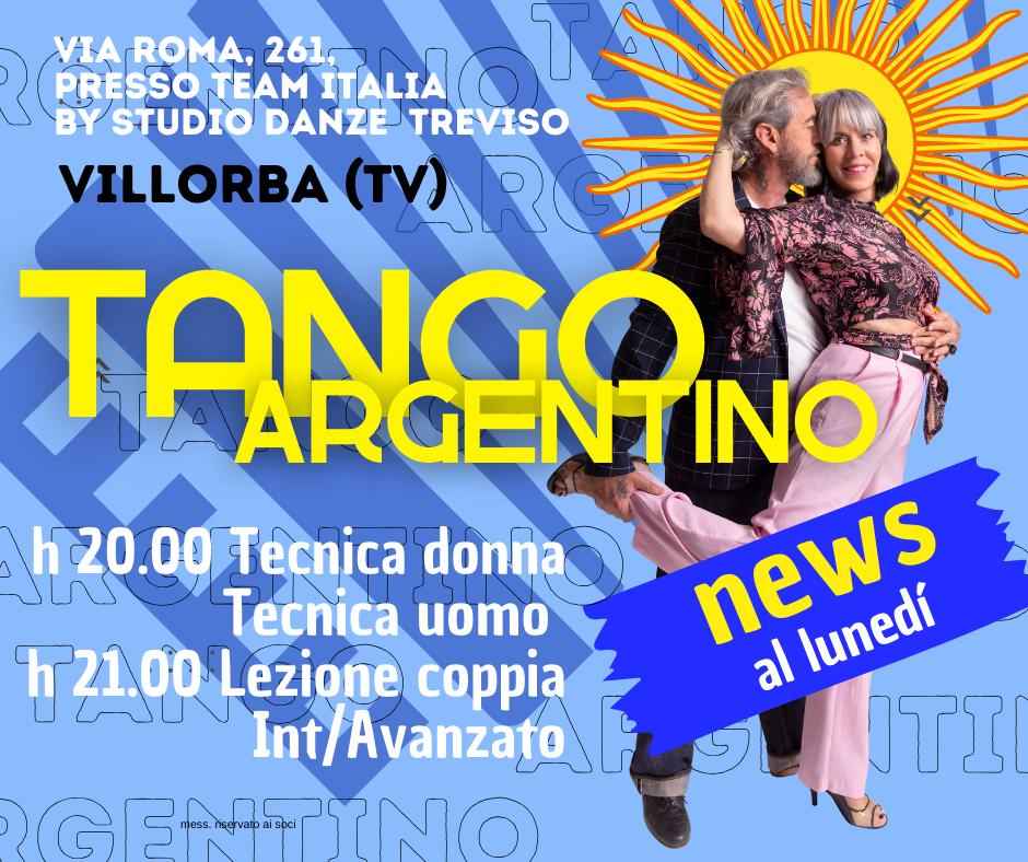 Nuovi corsi di Tango Argentino con Antonellina Miorelli ed Emiliano Casalli, ballerini professionisti, insegnanti e campioni Europei 2021 di Tango de pista e Vals internazionale!Iniziamo lunedì 29 settembre, con cadenza settimanale, presso Team Italia by Studio Danze Treviso, in via Roma 261, Villorba Tv.per saperne di più e per assicurarvi il posto, è possibile contattare i maestri (392 265 5354 Antonellina o 347 167 8200 Emiliano) o visitare il loro sito: https://www.aetango.com