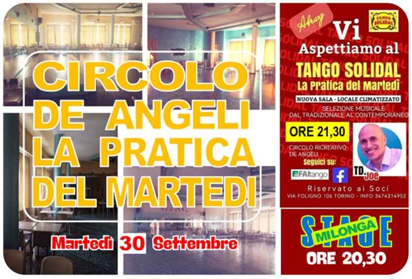 L A P R A T I C A L O N G A  del  m A R T E D Isolidal Tango La Praticalonga appuntamento Col Solidal Tango La Pratica,  martedi 30 Settembre   Dalle 20,30 Alle 21,30 Stage Di Milonga Con Riccardo E Eugenia A Seguire Fino Alle 23,30 Pratica costo Stage più Pratica 8€ solo Pratica 5€si Balla Si Chiacchera Si Sta Insieme In Allegria! La Selezione Musicale Sarà A Cura Del Dtjoe Dal Tradizionale Al Contemporaneo. Balleremo Nella Nuova Sala Di 200 Mt. Splendido Pavimento, locale Climatizzato E Servizio Bar, Non Prendete Impegni Vi Aspettiamo.