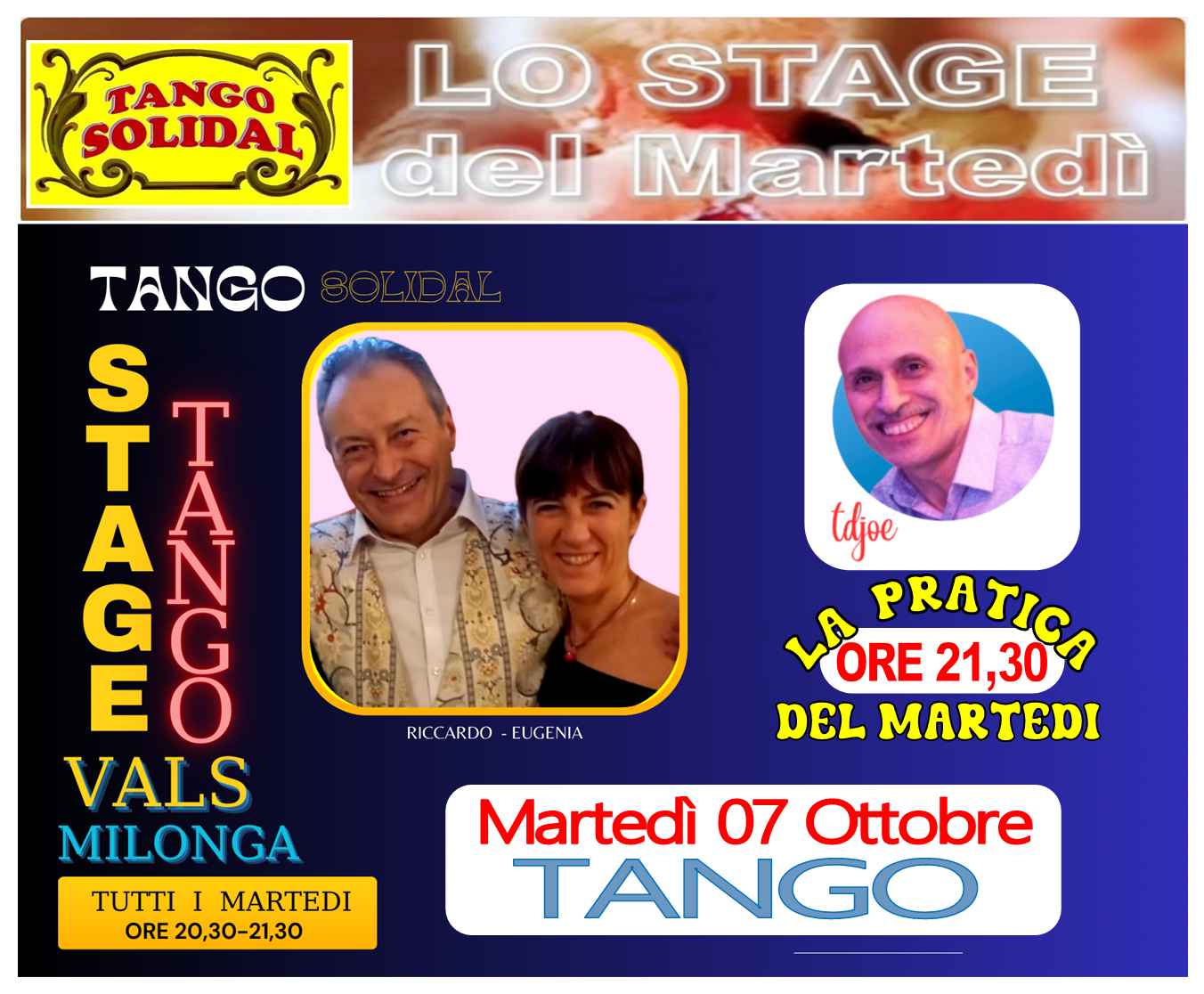 L A P R A T I C A L O N G A del m A R T E D Isolidal Tango La Praticalonga appuntamento Col Solidal Tango La Pratica, martedi 07 Ottobre Dalle 20,30 Alle 21,30 Stage Di Tango Con Riccardo E Eugenia A Seguire Fino Alle 23,30 Pratica costo Stage più Pratica 8€ solo Pratica 5€si Balla Si Chiacchera Si Sta Insieme In Allegria! La Selezione Musicale Sarà A Cura Del Dtjoe Dal Tradizionale Al Contemporaneo. Balleremo Nella Nuova Sala Di 200 Mt. Splendido Pavimento, locale Climatizzato E Servizio Bar, Non Prendete Impegni Vi Aspettiamo.