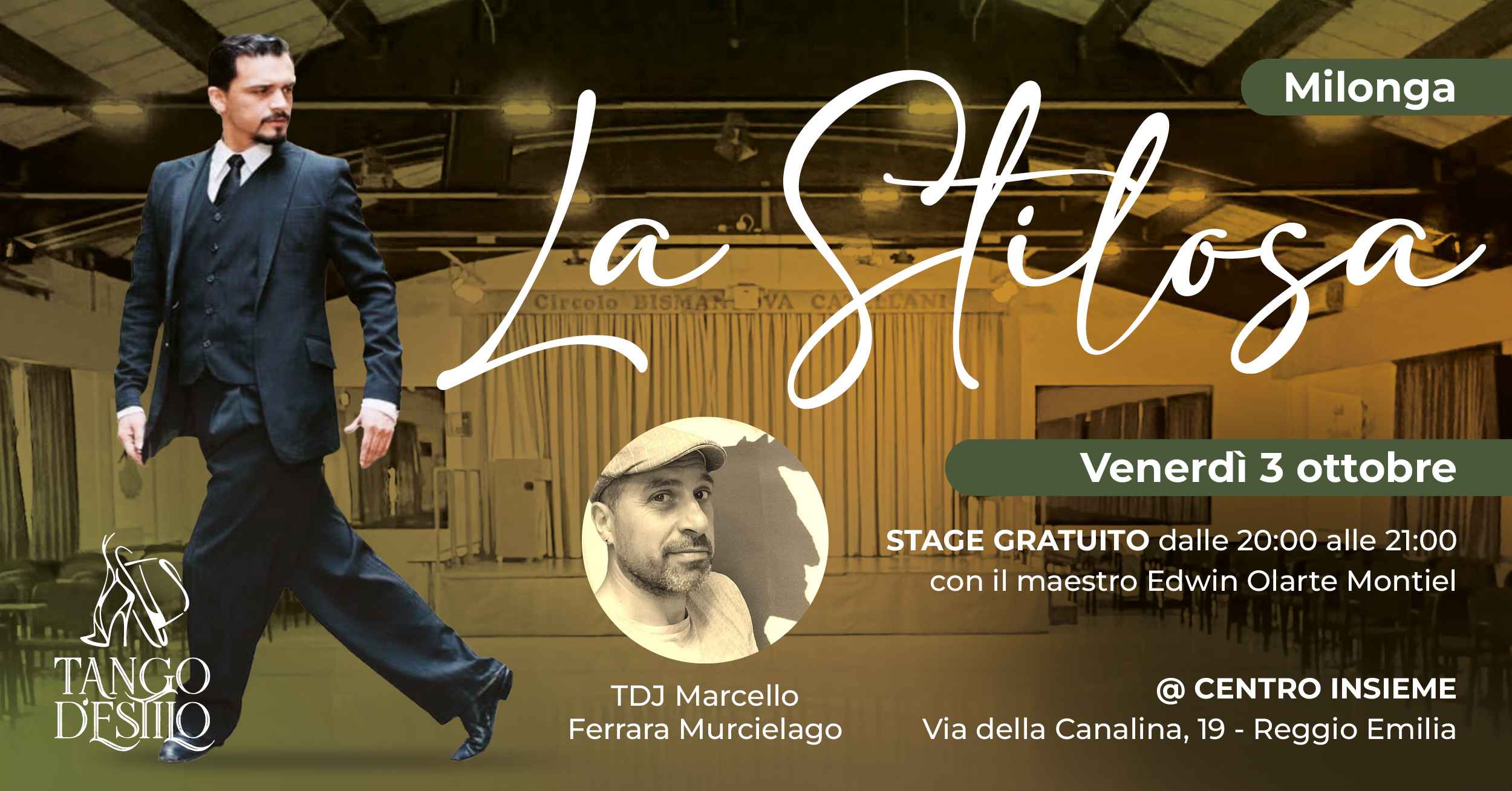 Appuntamento mensile con la Milonga La Stilosa!! Venerdì 03/10/2025 presso il Centro Insieme (Via Della canalina 19/1 42123 Reggio Emilia) Ospite della serata Tdj Marcello Ferrara Murcielago