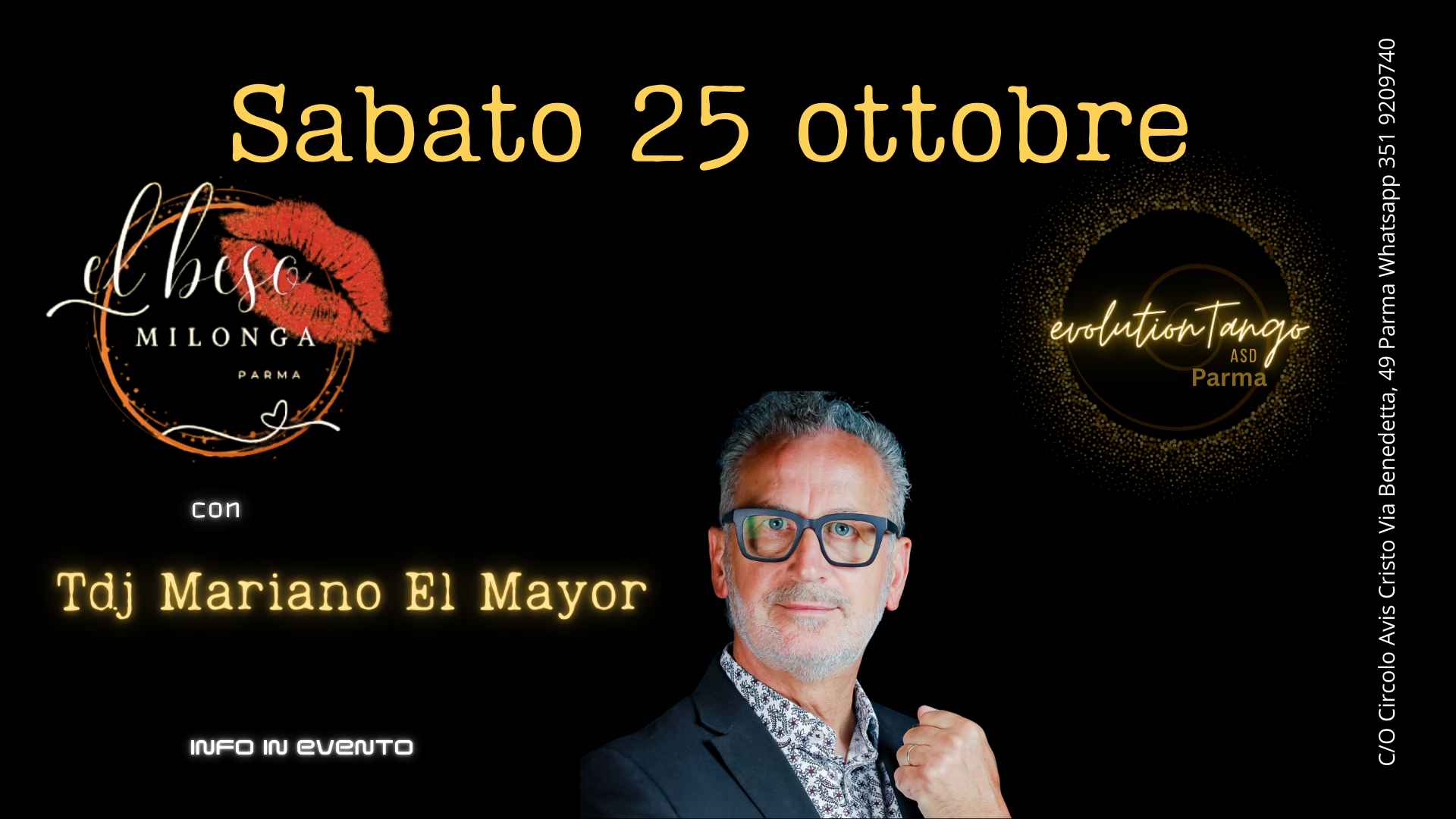 Luogo: Sala del Circolo Avis Cristo, Via Benedetta, 49 Parma. •  per Informazioni e Prenotazioni: whatsapp 351 92 09 740