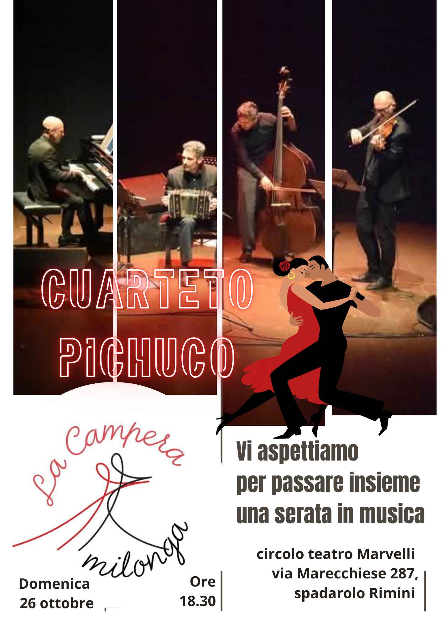 Domenica 26 ottobre alle 18.30 vi aspettiamo al Circolo Teatro Marvelli (via Marecchiese 287, Spadarolo – Rimini) per una serata speciale con la musica dal vivo del Cuarteto Pichuco 💃🕺