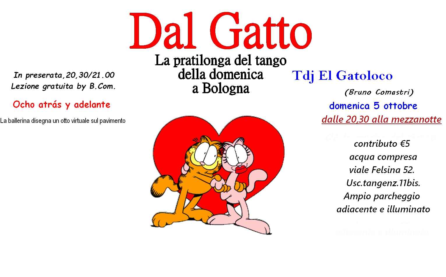 Dal Gatto - Pratilonga:20.30/21 lezione gratuita by B. Com, poi si balla il tango in tutte le sue versioni dalle 21,00 alla mezzanotte. tdj El Gatoloco (Resident) presso il circolo il Fossolo, affiliato Arci/uisp,