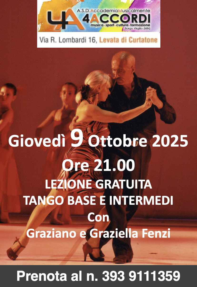 Lezione gratuita Tango Base e Intermedio con Graziano Fenzi e Graziella presso Accademia 4 Accordi