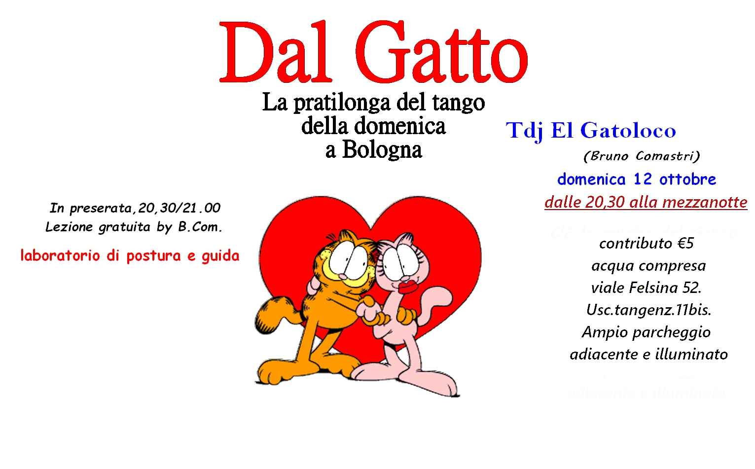 Dal Gatto - Pratilonga:20.30/21 lezione gratuita by B. Com, poi si balla il tango in tutte le sue versioni dalle 21,00 alla mezzanotte. tdj El Gatoloco (Resident) presso il circolo il Fossolo, affiliato Arci/uisp,