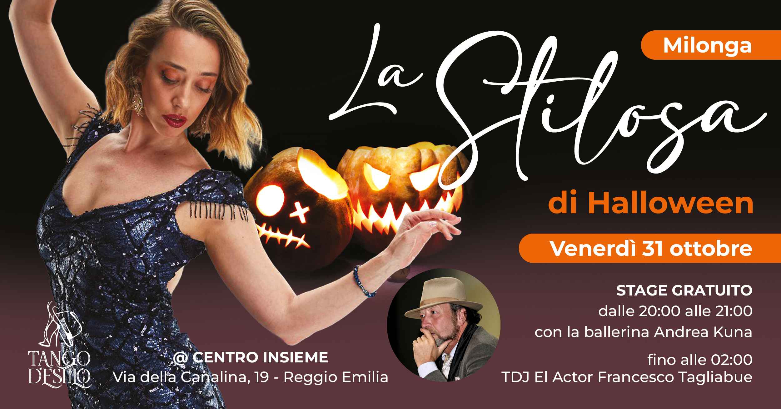 Preparatevi a varcare la soglia della notte più misteriosa dell’anno al ritmo del tango più passionale e spettrale con una ospite d’ eccezione!!!!! La Stilosa di Halloween avrà luogo Venerdì 31/10/2025 presso il Centro Insieme (Via Della Canalina 19/1 42123 Reggio Emilia) Ospite speciale la maestra e ballerina Andrea Kuna che terrà uno Stage gratuito dalle ore 20.00 alle ore 21.00. Tdj Francesco Tagliabue Ora inizio evento: 21:00 Ora fine evento: 02:00 Contributo unico: 15 euro Per avere informazioni o prenotare potete inviare un messaggio whatsapp con nome e cognome al 3930421099 (Francesca) Se invece non volete prenotare c'è posto anche per voi! La sala è grande e spaziosa, e ci saranno molte sedie a disposizione... ma fino ad esaurimento posti. NB: si ricorda che l'evento è accessibile solo a chi in possesso di tessera A.r.c.i. (chi sprovvisto potrà farla in loco al costo di 13,00 euro).